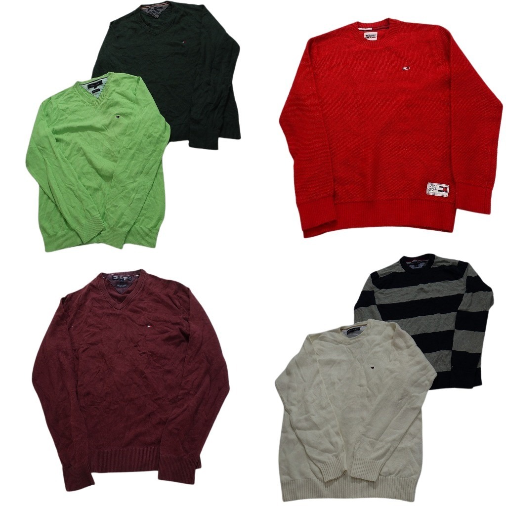 > 古着卸 まとめ売り トミーヒルフィガー セーター 6枚セット (メンズ S ) Vネック クルーネック ボーダー レッド NC3106 1円スタート