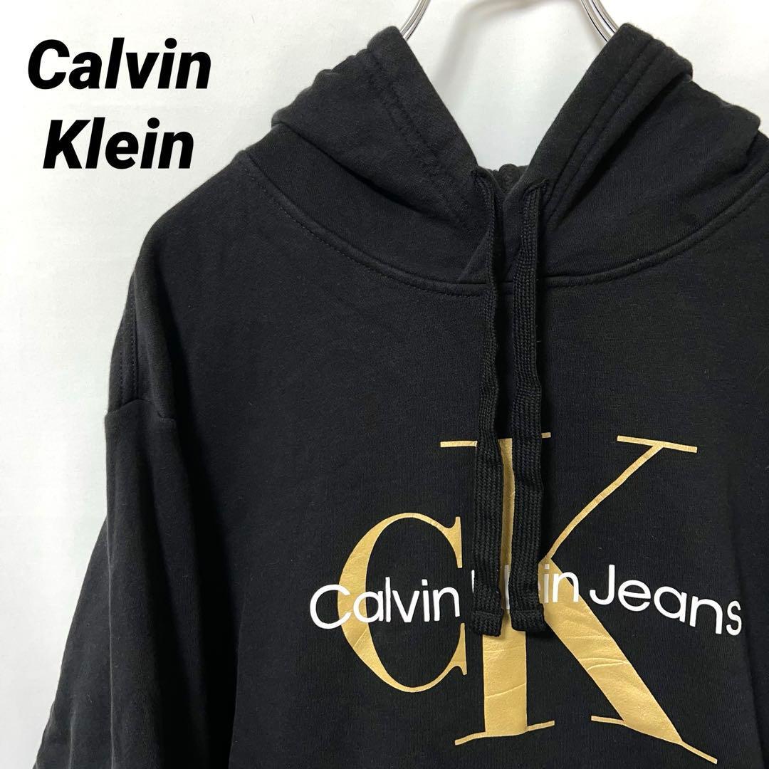 - N-5844 Calvin Klein カルバンクライン アメリカ古着 CK ロゴプリント スウェット パーカー L メンズ