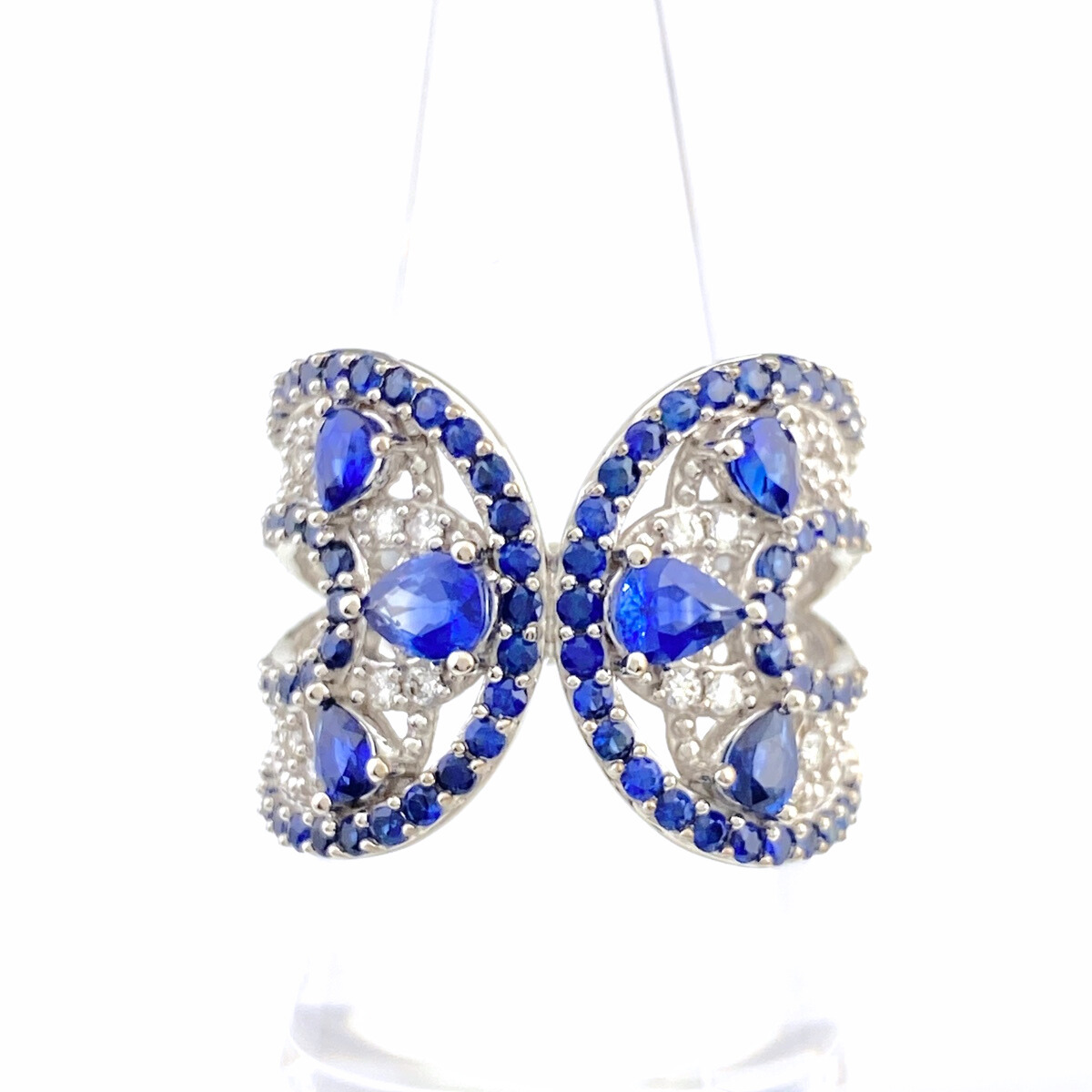 > GSTV サファイア デザインリング 指輪 メレダイヤ リング 16号 K18 サファイア ダイヤモンド レディース 【中古】