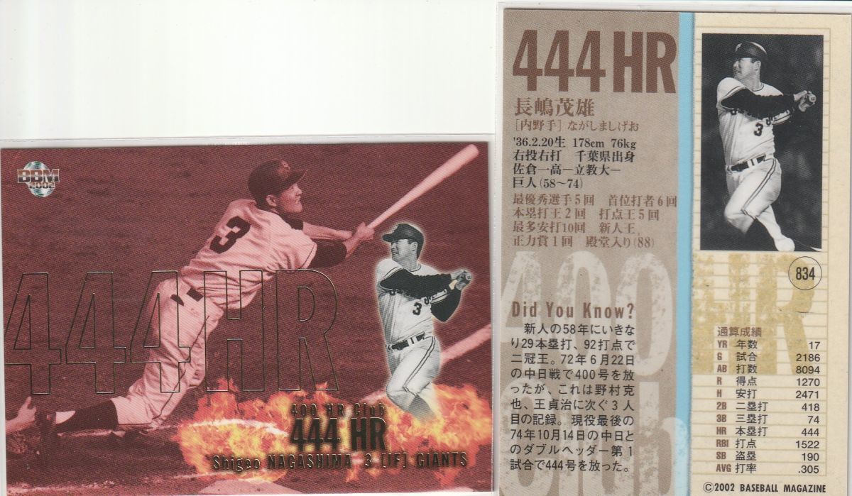 - ●2002BBM/2nd 【長嶋 茂雄】 400HRクラブ No.834:巨人 R