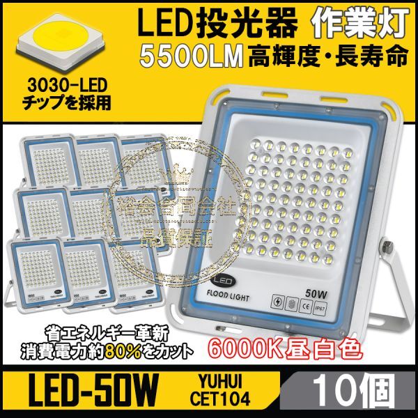 > ★送料無料・30日間保証付き★極薄型 LED投光器 50W 10個セット 広角120° 昼光色6000K 5500LM IP67 作業灯 駐車場灯 防水 屋外