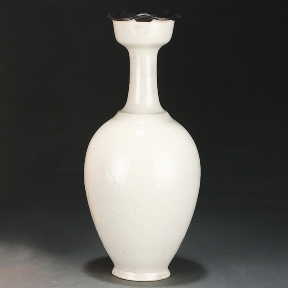 - ▽鴻▽宋時代 陶磁器 定窯白磁包銀花口瓶 共箱 時代物 中国古美術 骨董品