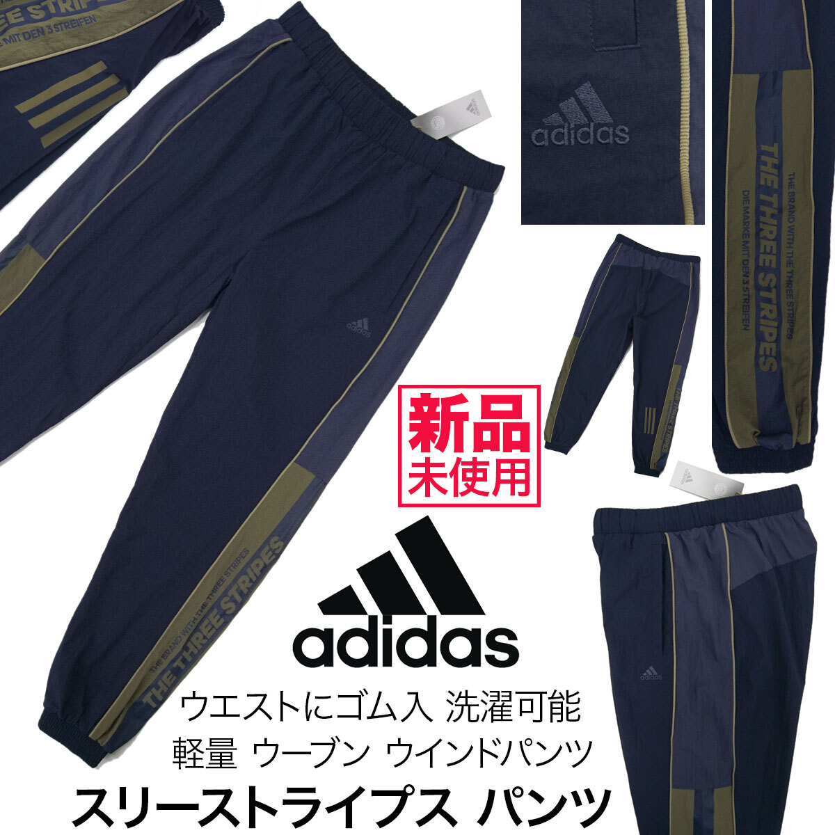 新品・未使用【アディダス adidas】THE THREE STRIPES(スリーストライプス)ジョガーパンツ(ウインドパンツ)(タグ付き)。