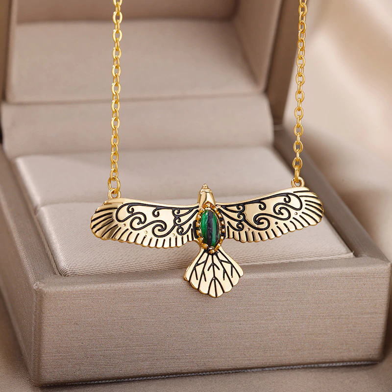- ネイティブな雰囲気★k18色ゴールド イーグルネックレス鷹ステンレスサファイア