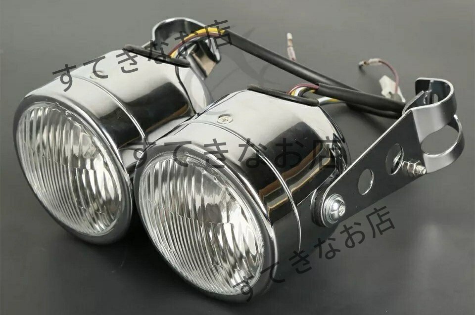 - CHQ1461#【メッキ】ツインヘッドライト ブラケット付 ストリートファイター カフェレーサー 汎用 ハーレー ストファイ ダブル