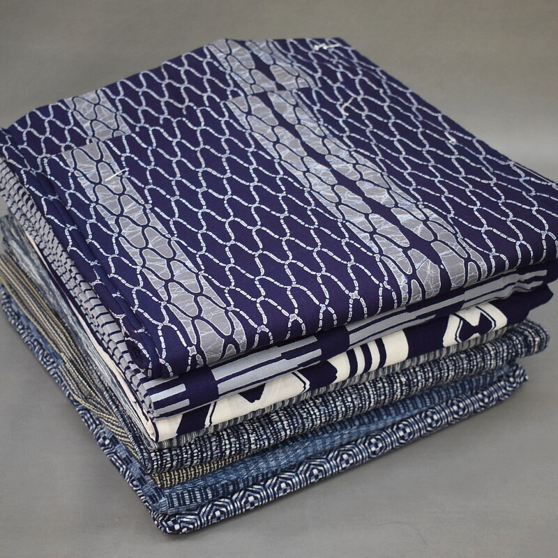 - B20-4【凛々】中古品 本染 男物 ゆかた 8点組 まとめ売り ★着用 リメイク材料にも