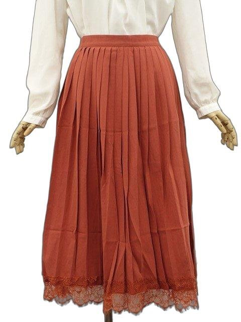 > 定価\7,900 新品タグ付 ティティ&コー titty&Co. ロング丈 ヘムレースプリーツスカート S レッド