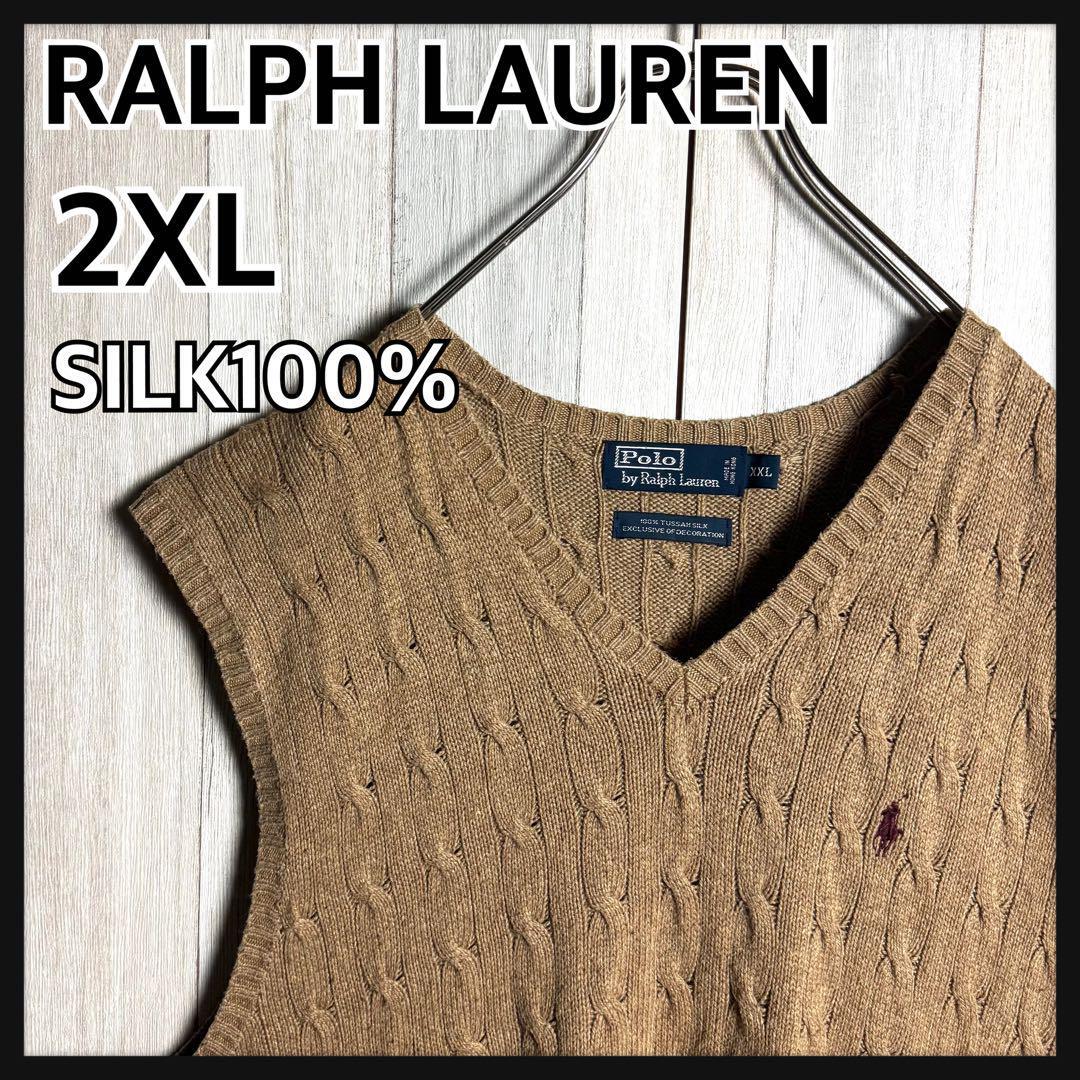 - 【激レア・シルク100%・ビッグサイズ】Polo by Ralph Lauren ラルフローレン ポニー刺繍ロゴ ケーブルニット ベスト ベージュ 2XL