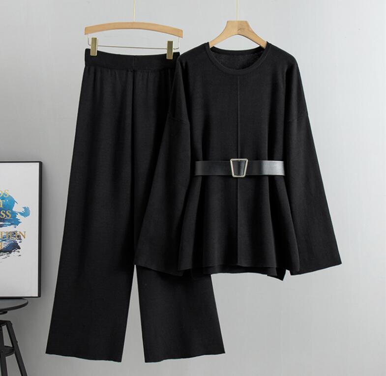 - M1015 パンツスーツレディース● 着心地抜群 20代30代40代 ● ニット素材 秋冬 上下セット black