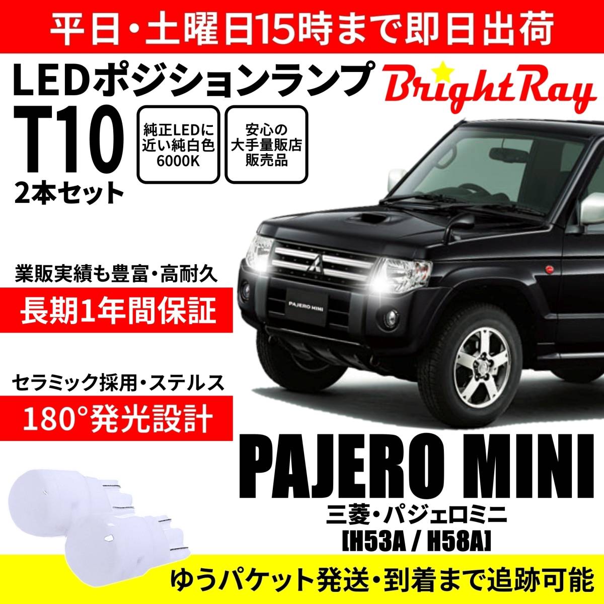 - 送料無料 1年保証 三菱 パジェロミニ H53A H58A BrightRay T10 LEDバルブ ポジションランプ 車幅灯 車検対応 2本セット ホワイト 6000K