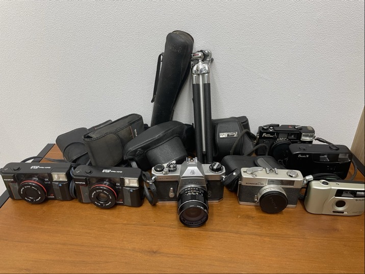 > #9921 フィルムカメラ7点セット三脚付き 動作未確認品 PENTAX/FUJICA/OLYMPUS/FUJI等