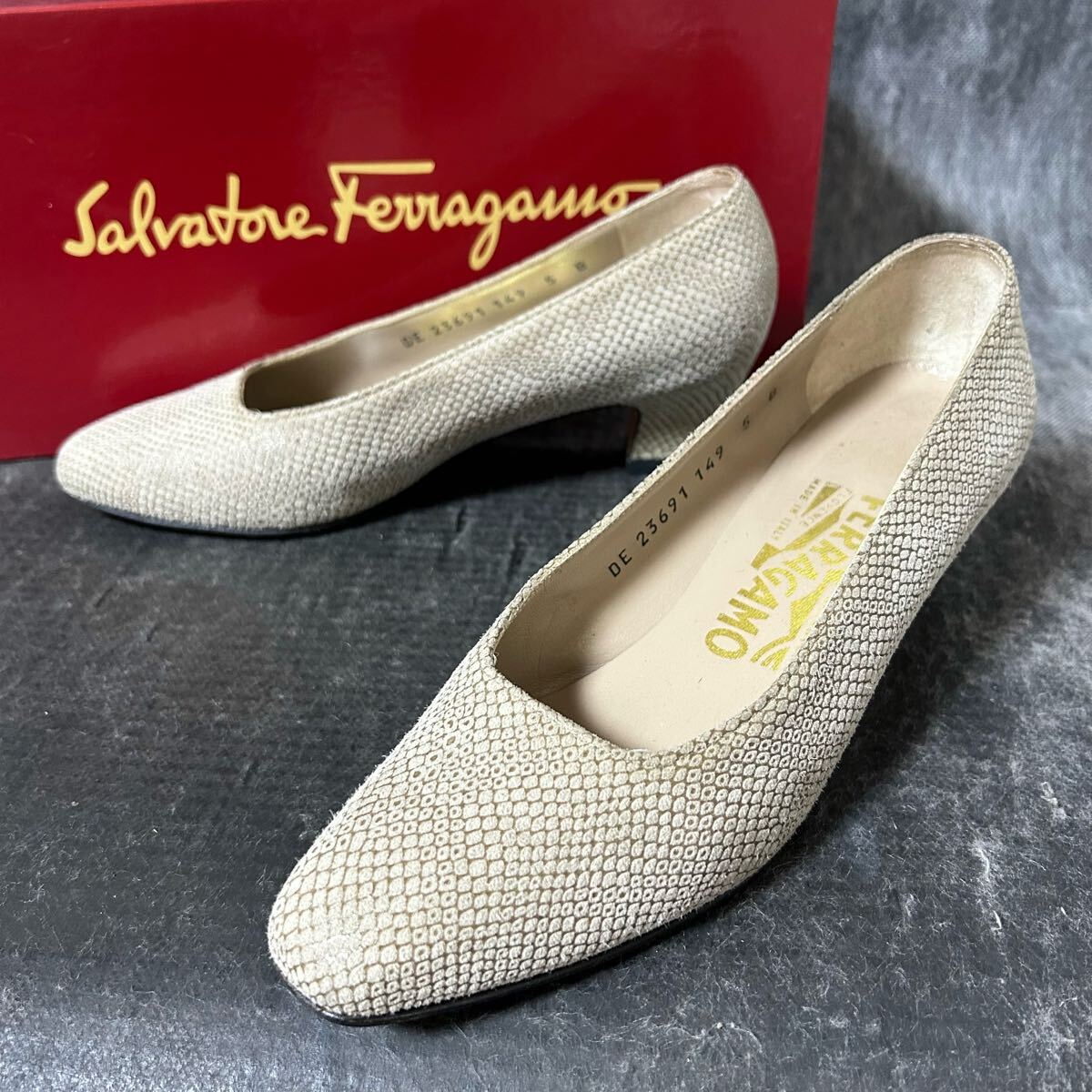 - Salvatore Ferragamo サルバトーレ・フェラガモ スエードパンプス パンプス ヒール新品 5B 22-22.5cm相当 ベージュ *FA