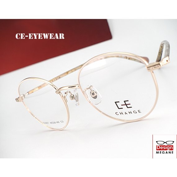 > 眼鏡一式☆度入レンズ込★designメガネ★ CE CHANGE Eyewear ラウンドメガネ Ivory×Gold フルリム (近視、乱視、老眼、伊達 全て対応)