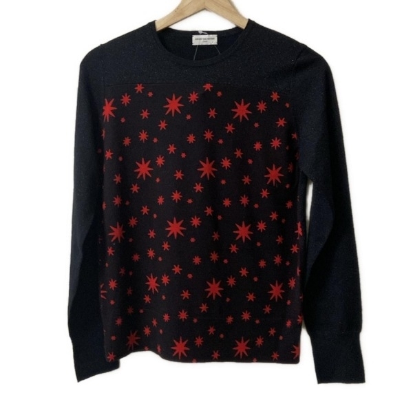 - ドリスヴァンノッテン DRIES VAN NOTEN 長袖セーター/ニット サイズS - 黒×ダークブラウン×レッド レディース スター(星)/ラメ 美品