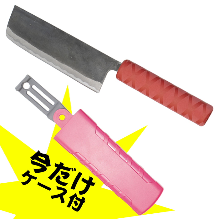 - 黒打収穫包丁 両刃 ラバーグリップ ケース付 (株)コジマ 野菜切 白菜切