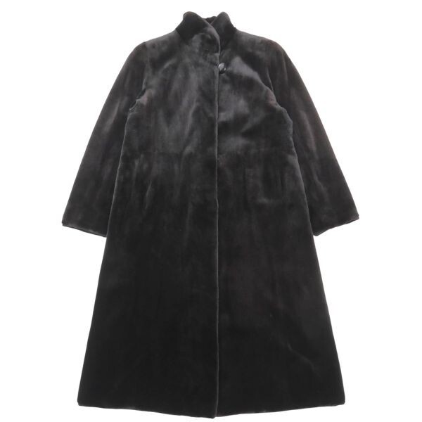 - GS2971◎GRES グレ SAGAMINK サガミンク シェアード ファーコート ロングコート サイズF 毛皮コート スタンドカラー ダークブラウン系