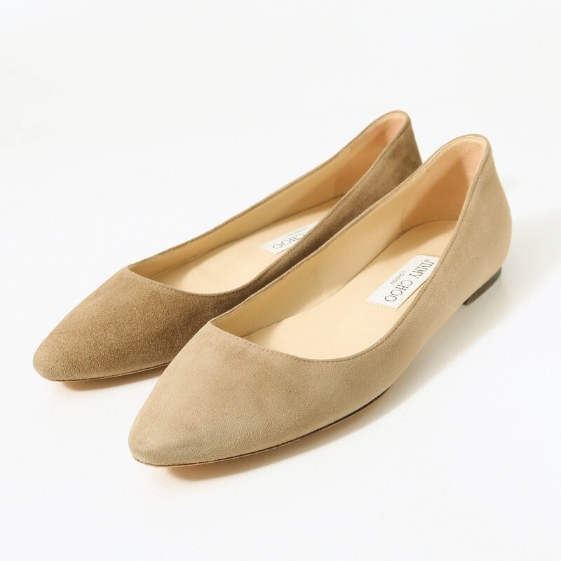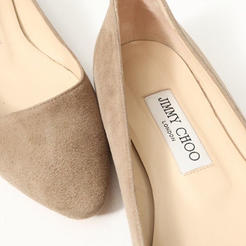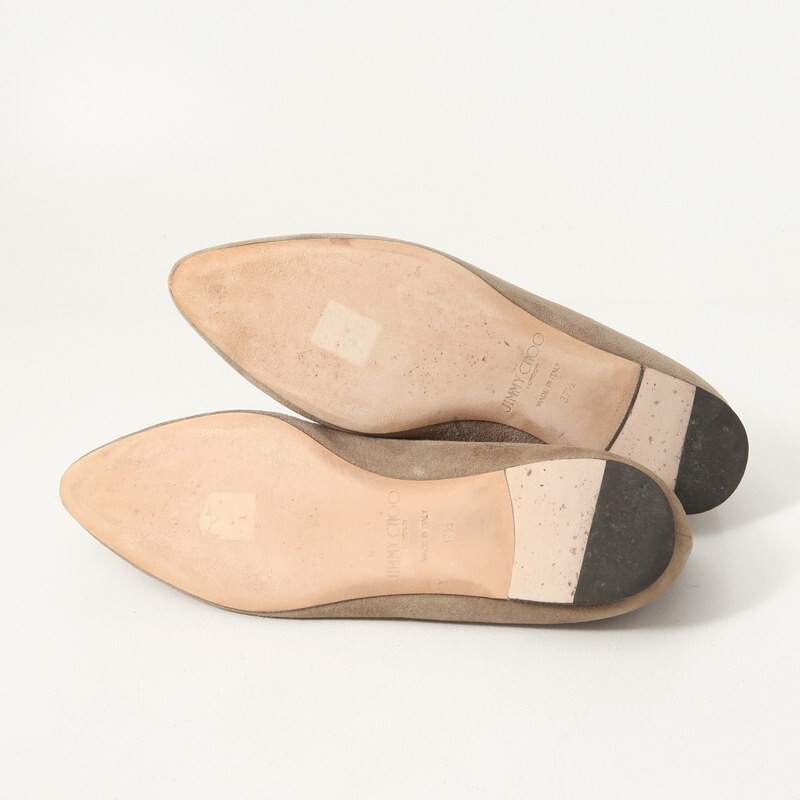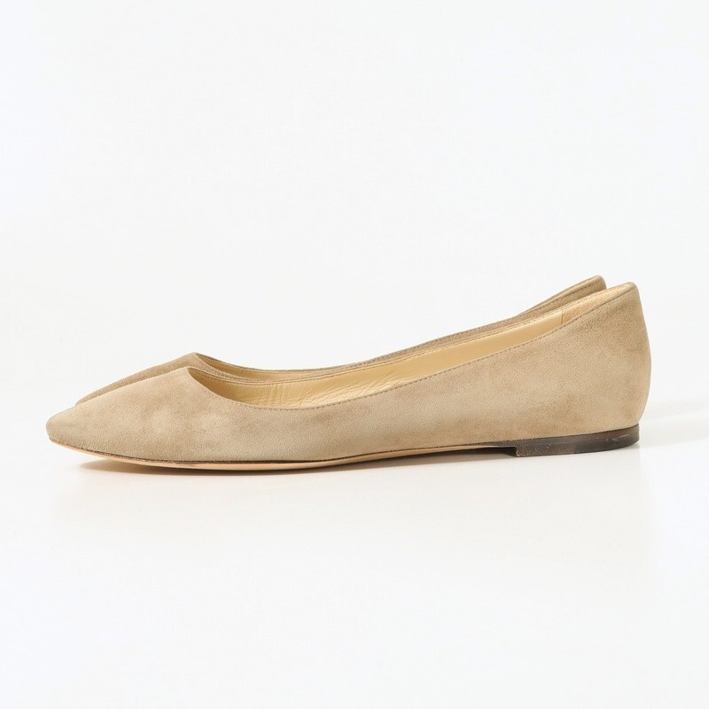 - GS4041*イタリア製 JIMMY CHOO ジミーチュウ 37.5(24cm相当) スエードレザー フラットシューズ パンプス 靴 グレージュ系
