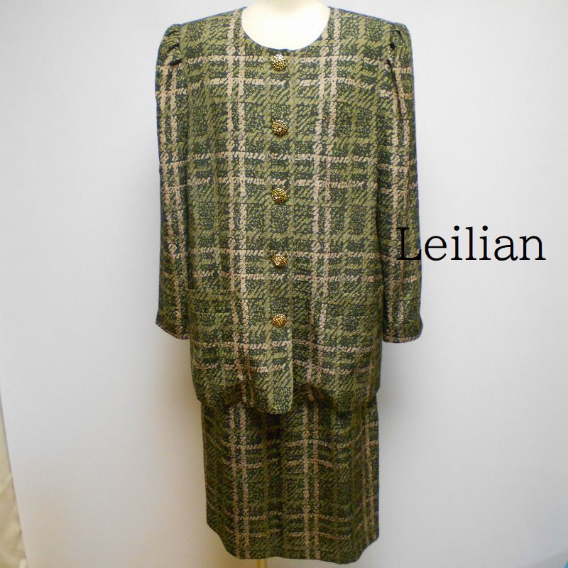 - 973179 Leilian レリアン カーキ系柄 スカートスーツ セットアップ 13+