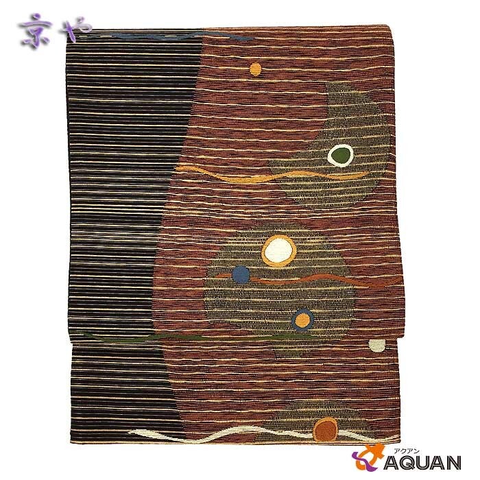 - セール 京やJ110 正絹 京都西陣織袋帯 証紙2412 洒落袋帯 抽象文様 遊彩紙子織 付下げ 紬 小紋用 未仕立て 新古品 未使用品