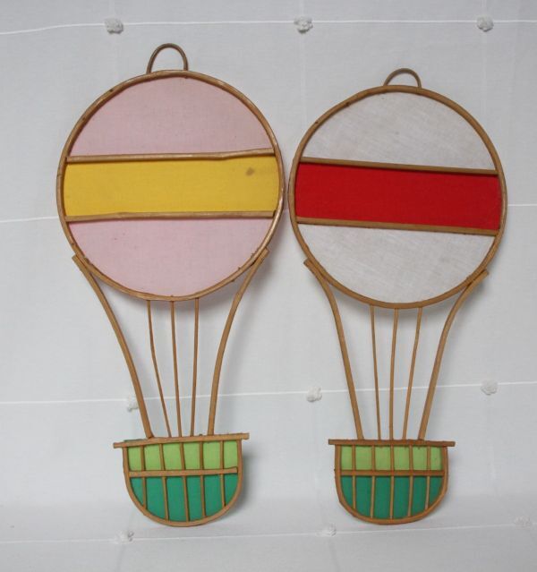 - ベルギー アンティーク 古い木製の子供部屋の壁飾り 気球の壁飾り 2個セット 美品