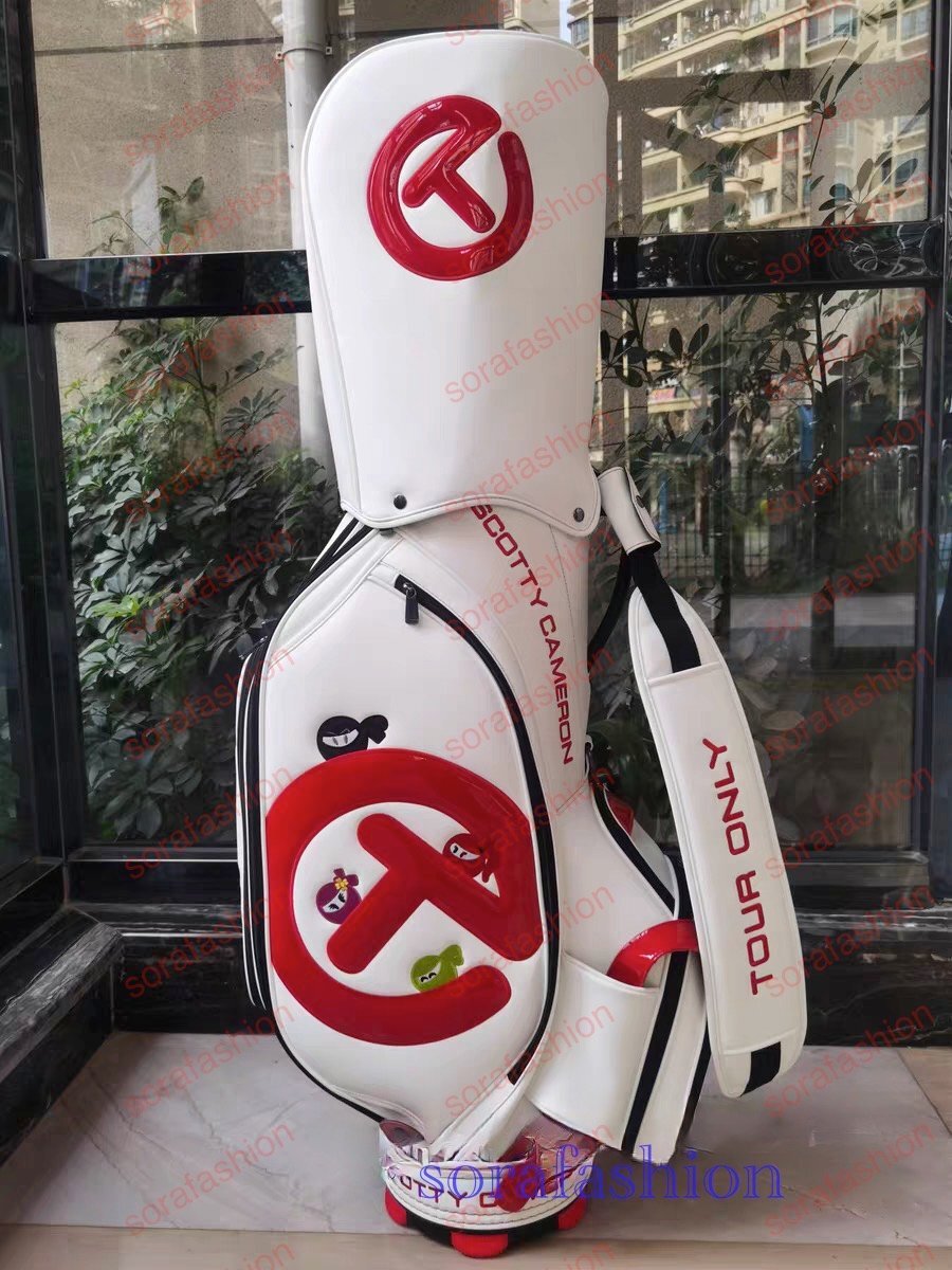 > 美品 スコッティ キャメロン タイトリスト ゴルフバッグ キャディバッグ 9型 約5kg 6分割 合成皮革 ホワイト サークルT