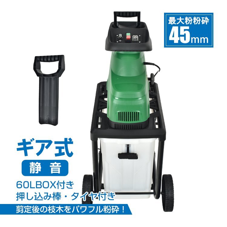 - ガーデンシュレッダー 粉砕機 家庭用 静音 ギア式 電動粉砕機 シュレッダー ウッドチッパー 枝葉処理 剪定 ごみ 粉砕 庭木 園芸 60L sg055