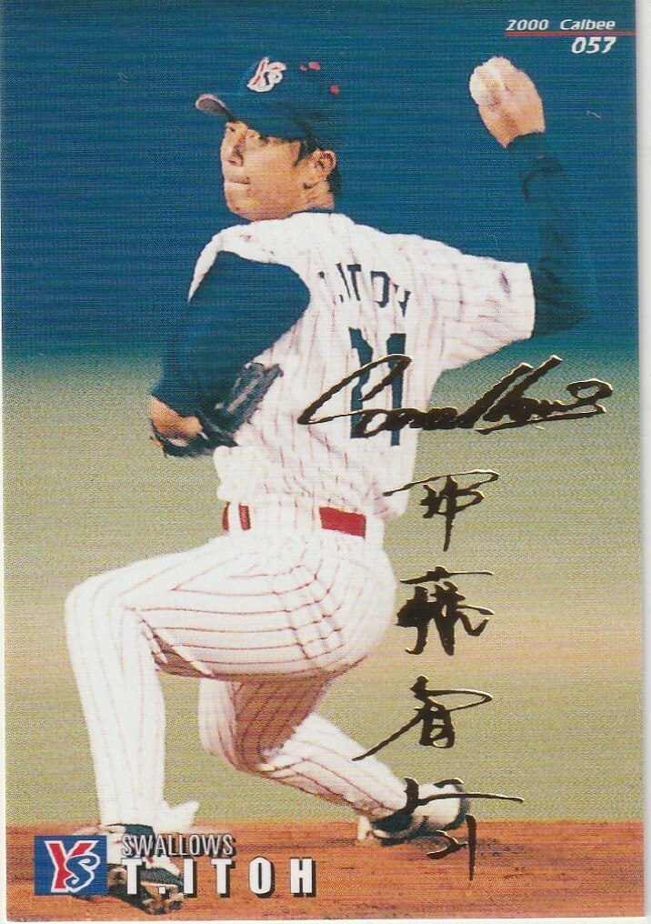 - ●2000カルビー 【伊藤智仁】プレ版:金箔押サインパラレル No.057:ヤクルト