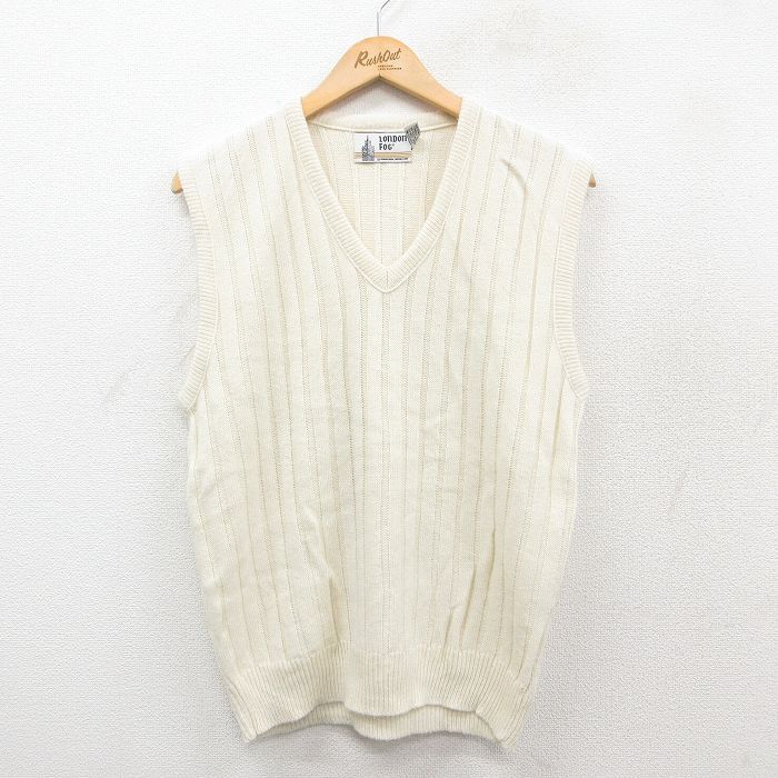- S/古着 ロンドンフォグ ニット ベスト メンズ 90s アクリル Vネック 白系 ホワイト 25oct10 中古 トップス