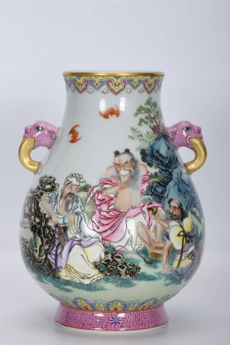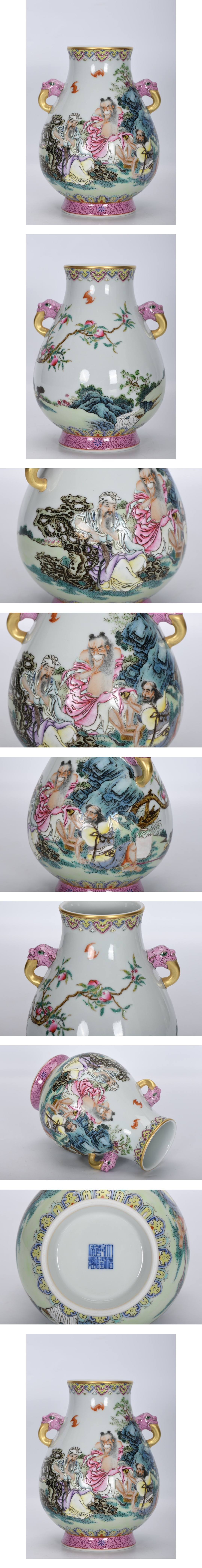 - ◆珍蔵◆中国古美術 清乾隆年製款 琺瑯彩 描金 古陶磁 山水人物故事図双耳尊 細密細工造 置物 擺件 古賞物 骨董品 時代物 A02