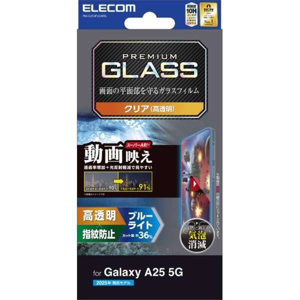 > Galaxy A25 5G用画面保護ガラスフィルム 動画映え/ブルーライトカットタイプ 光の映り込みに邪魔されずに視聴可能: PM-G253FLGARBL