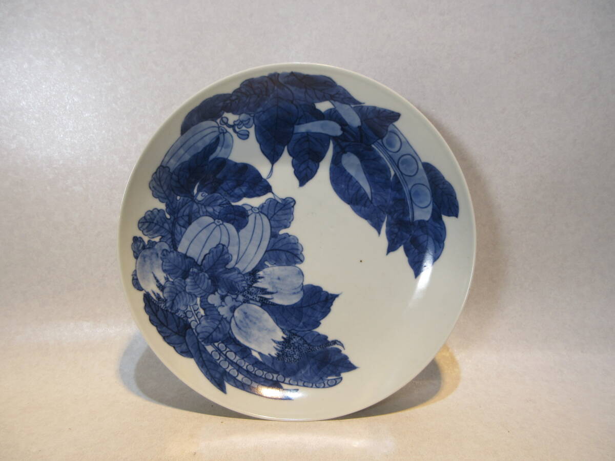 - T2680 鍋島 染付野菜尽文皿 図録同手品 6寸5分皿 直径19.8cm