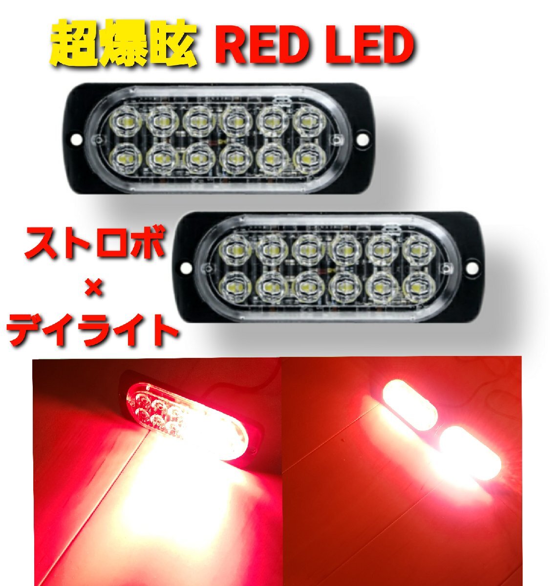 - 超爆眩 12V 24V ハイパワー LED ストロボ フラッシュライト ストロボライト デイライト 車 バイク トラック レッド Bスト