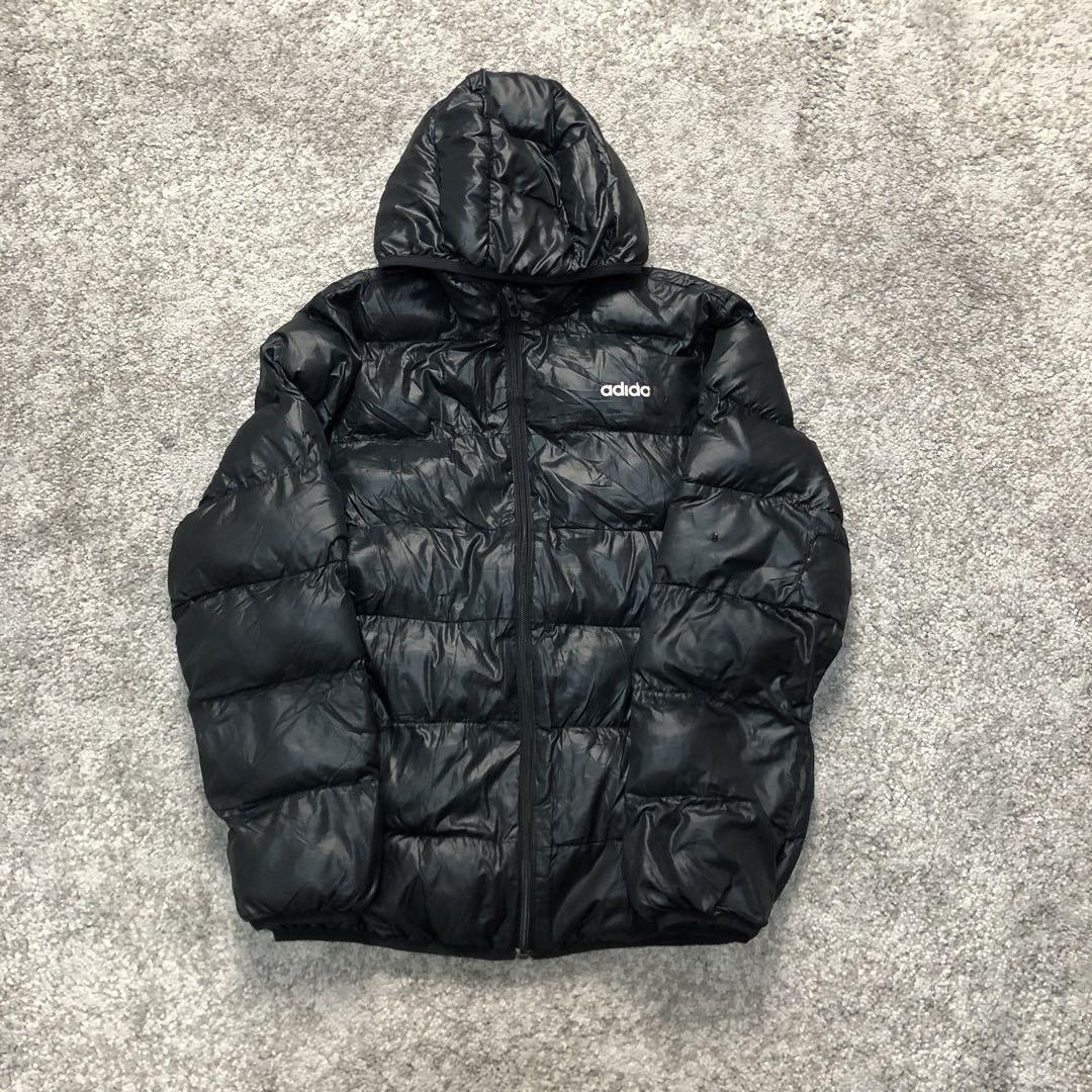 - キッズ アディダス ダウンジャケット フード付き 黒 ブラック アウター