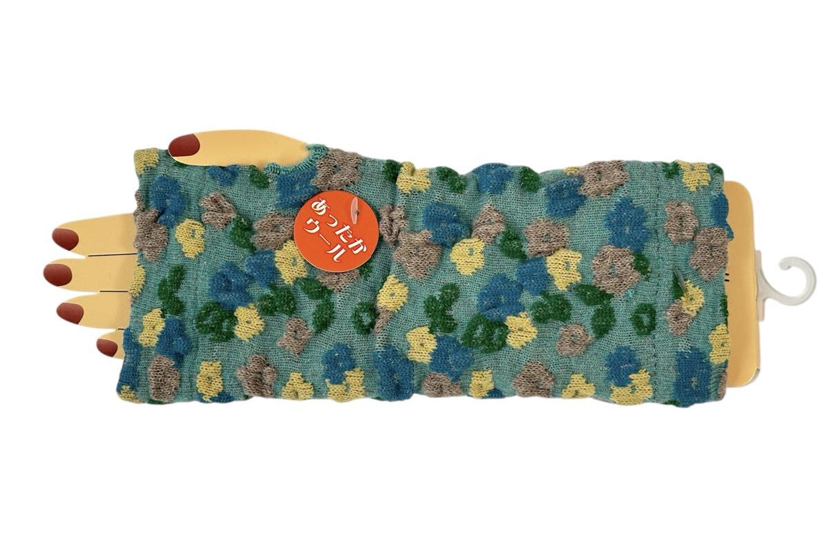- 新品 ウール混 フラワーモチーフ 指なし手袋 アームウォーマー ニット