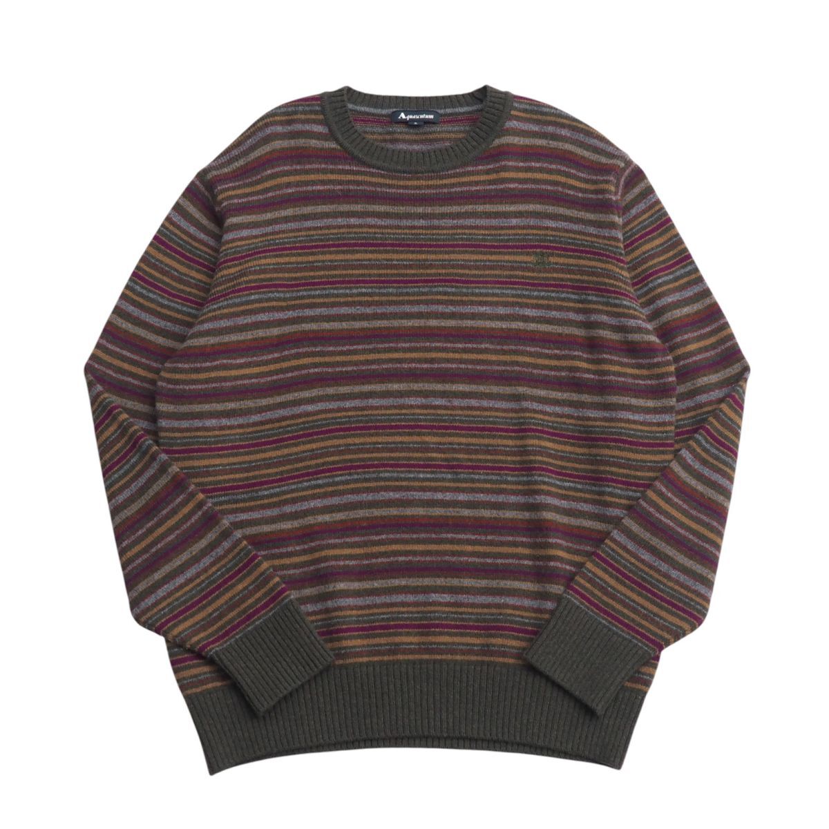 - TJ5396+Aquascutum/アクアスキュータム*メンズ2L*ウールニットセーター*クルーネック*ボーダー柄*ロゴ刺繍*マルチカラー
