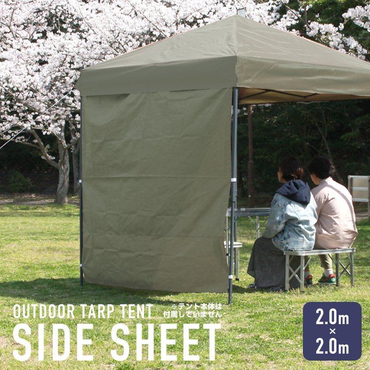 > タープテント用 サイドシート 2m×2m 着脱式 ワンタッチ サンシェード UVカット 撥水 日除け アウトドア キャンプ BBQ コヨーテ mermont
