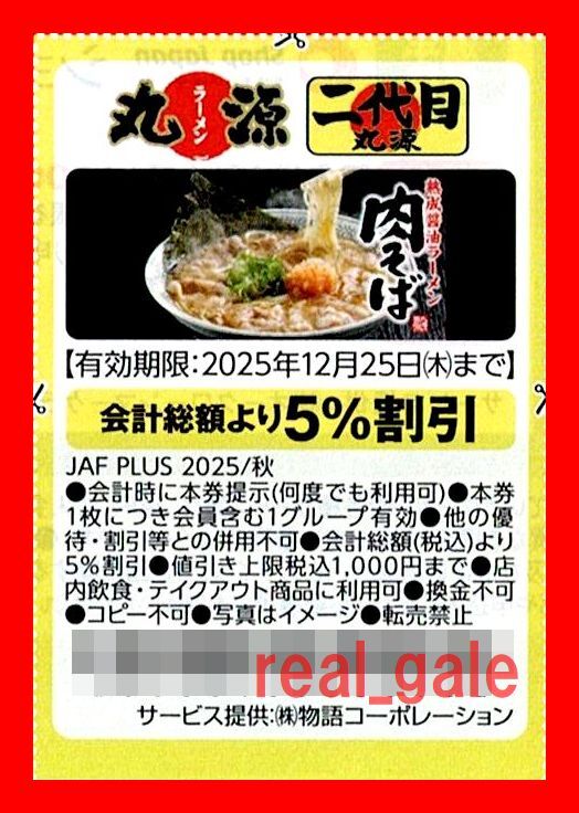 > ■■送料無料■■丸源ラーメン/二代目丸源 5%割引券■何度でも利用可能■グループ全員対象■2025年12月25日まで■