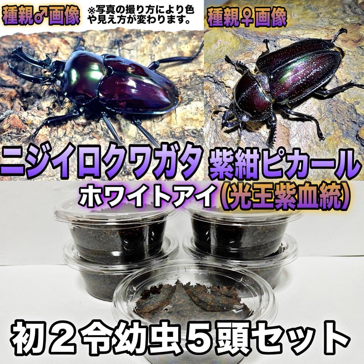 > 紫紺ピカールニジイロクワガタ初2令幼虫5頭(♂紫紺ピカール光王紫血統ホワイトアイ)×(♀紫紺ピカール光王紫ホワイトアイ)