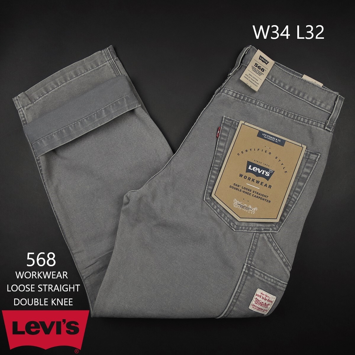- 新品 ★ Levi’s リーバイス 568 WORKWEAR LOOSE STRAIGHT DOUBLE KNEE ルーズ ストレート ダブルニー A7367/006 GREYS/【W34 L32】