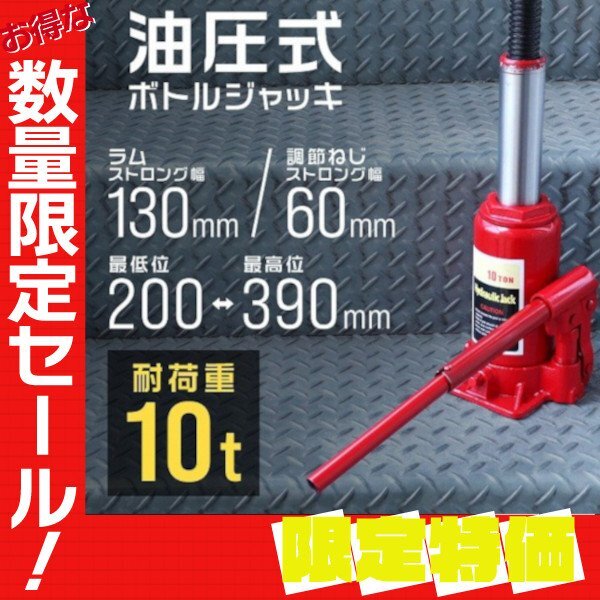 > 【限定セール】新品未使用 油圧式 ボトルジャッキ 耐荷重10t 200mm~390mm ハンドル延長可能 手動 ダルマ ジャッキ タイヤ 交換 整備