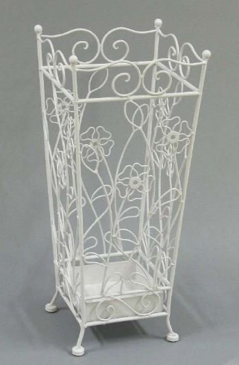 - 輸入雑貨 傘立て アイアン クラシック フラワー リビングスタジオ 直輸入 白 正方形 ヨーロピアン アンティーク シャビー 350005 送料無料