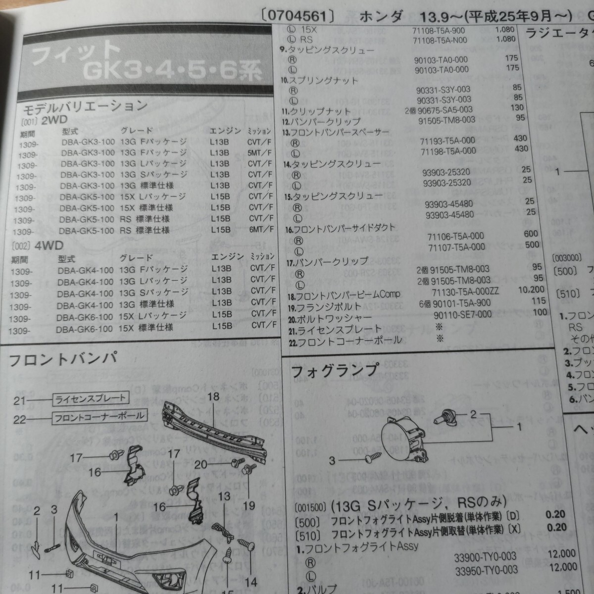 - ■■【パーツガイド】 ホンダ フィット (GK3・4・5・6系) H25.9~ 2013年後期版 【絶版・希少】