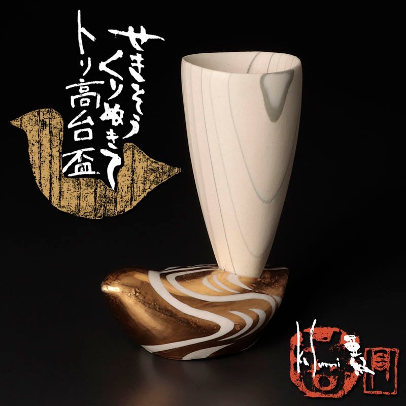 - 【古美味】植葉香澄 片山亜紀 せきそうくりぬきて トリ高台盃 茶道具 保証品 J9Ru