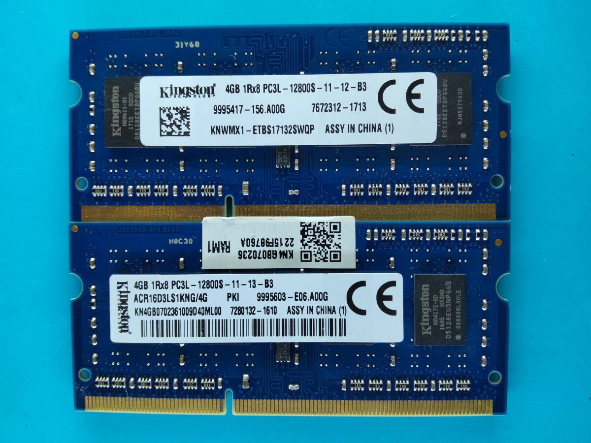 - 動作確認 Kingston製 PC3L-12800S 1Rx8 4GB×2枚組=8GB 13100011007