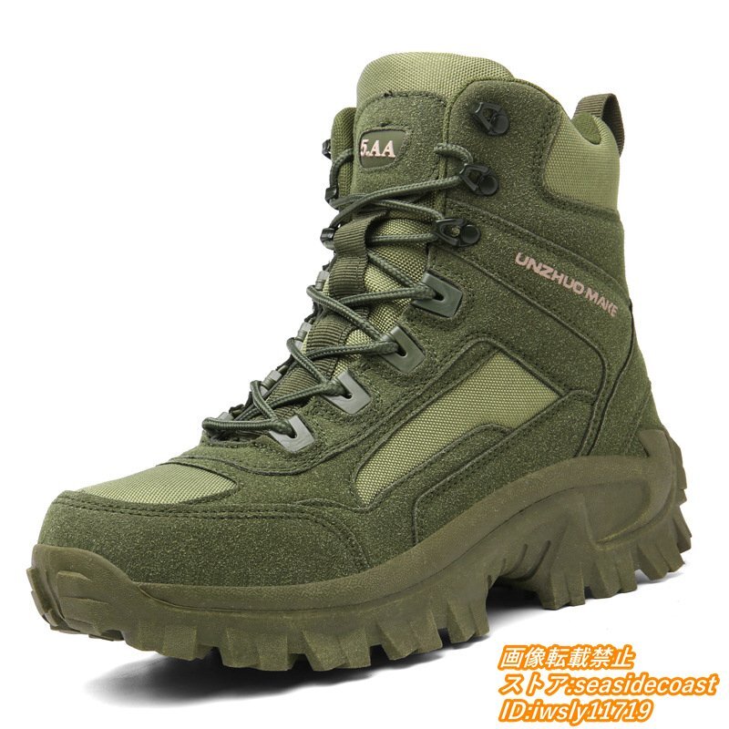 - 新品☆トレッキングシューズ メンズ 登山靴 アウトドア靴 ハイキング 撥水防滑 軽量 ブーツ ハイカット キャンプ 衝撃吸収 オリーブ 28.0cm