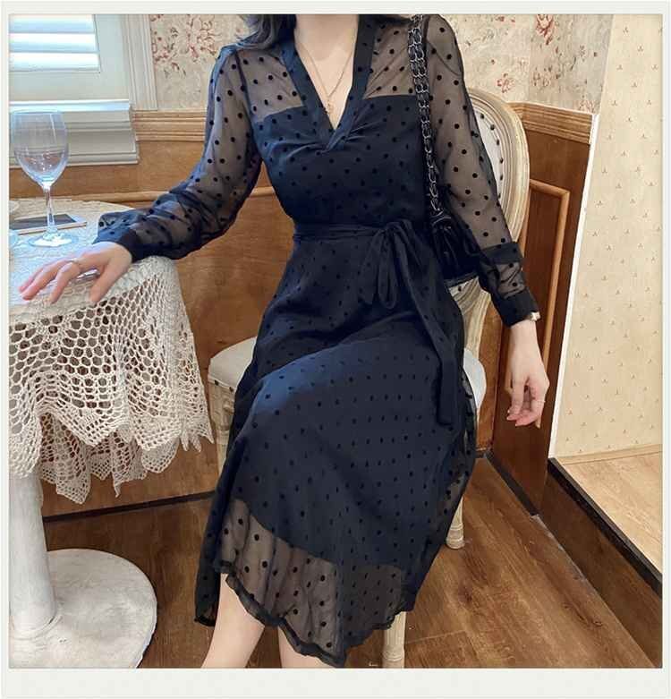 - ロングスカート Vネック レトロ ワンピース 大きいサイズ 長袖 3XL ワンカラー