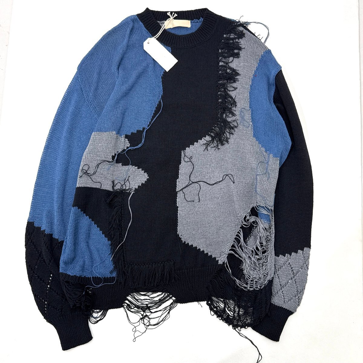 - 24ss【タグ付き・新品・定価63,800円】meagratia Frayed knit P/O / フレイド ニット プルオーバー 2 blk 24251-1001N メアグラーティア