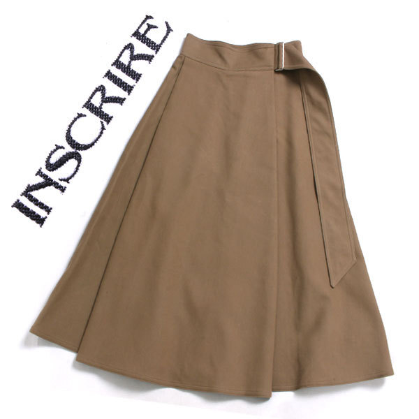 > INSCRIRE オーバーラップスカート 定価52,920円 size36 ベージュ アンスクリア ベルテッド