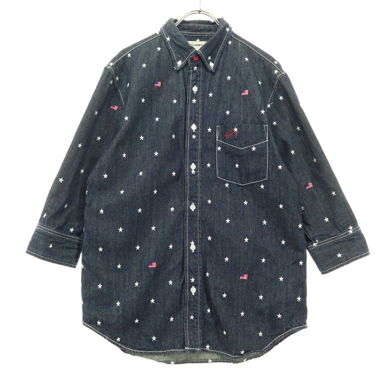 TOMMY トミー 星条旗柄 7分袖 ボタンダウン デニムシャツ M ネイビー メンズ