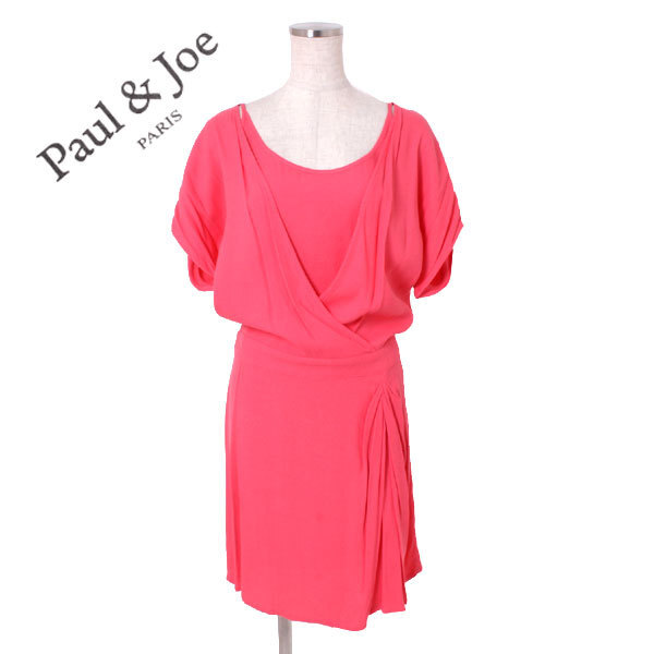 > 新品 PAUL & JOE カシュクールワンピース 定価48,300円 size36 ピンク ポールアンドジョー